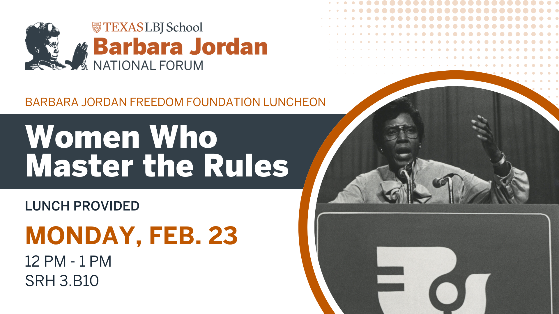 This event is sponsored by the Barbara Jordan Freedom Foundation.